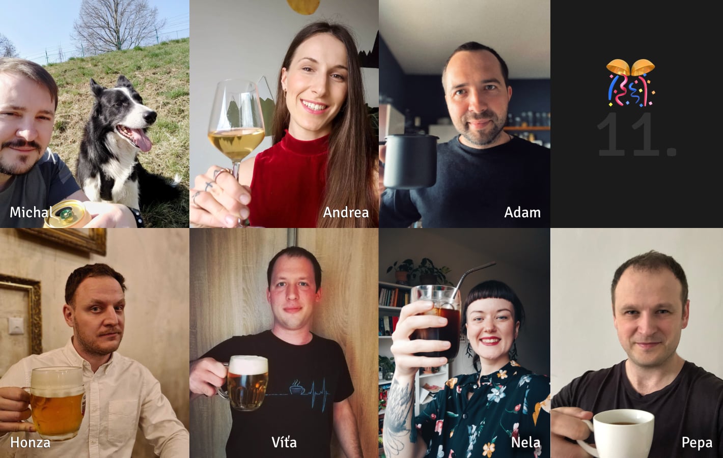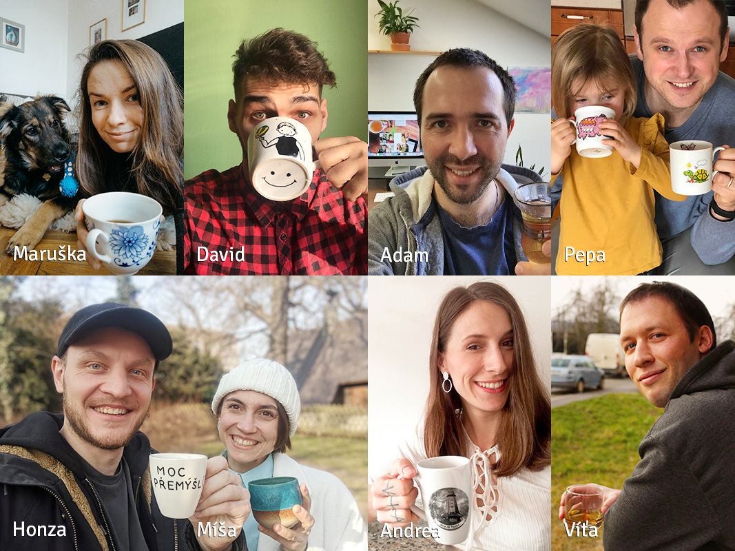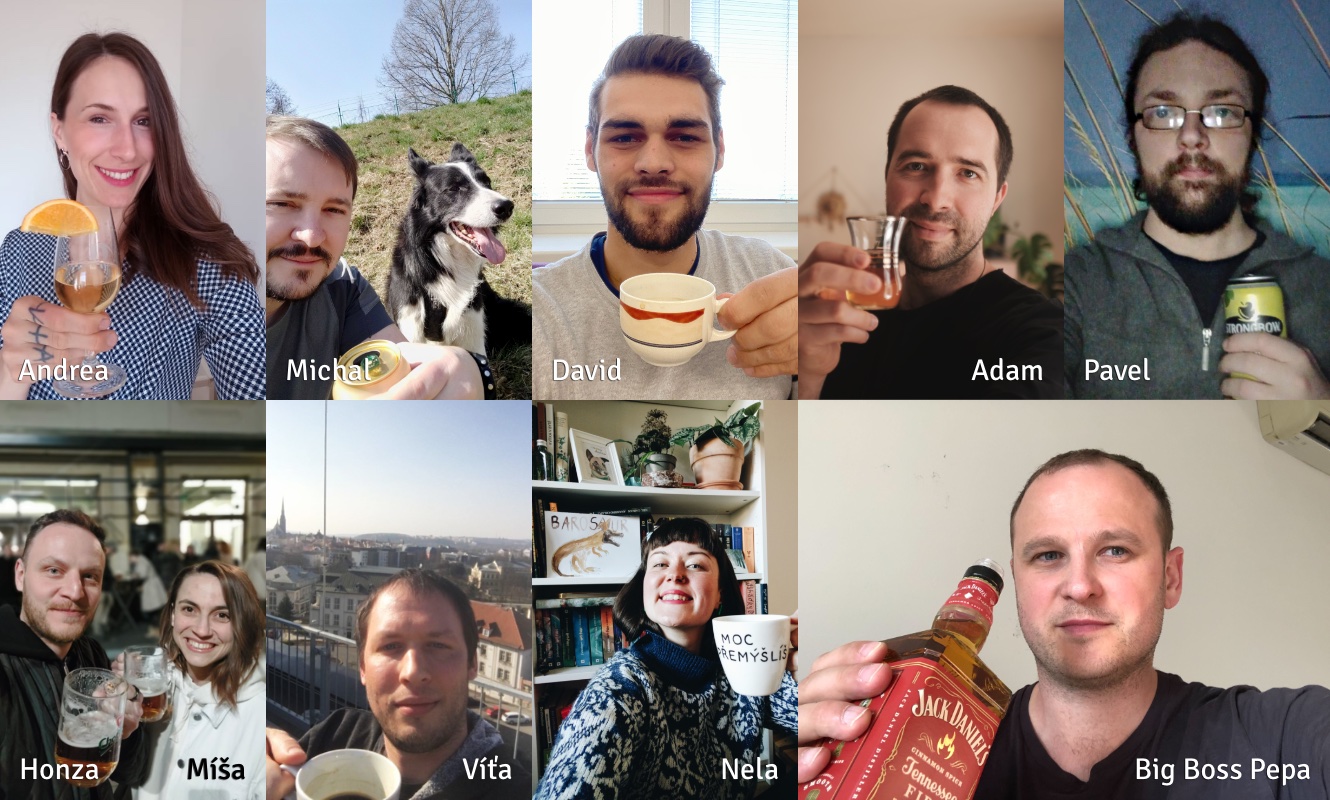 Náš aktuální tým tvoří sedm lidí. Spolupráci s Míšou, Davidem a Pavlem jsme v uplynulém roce pozastavili.