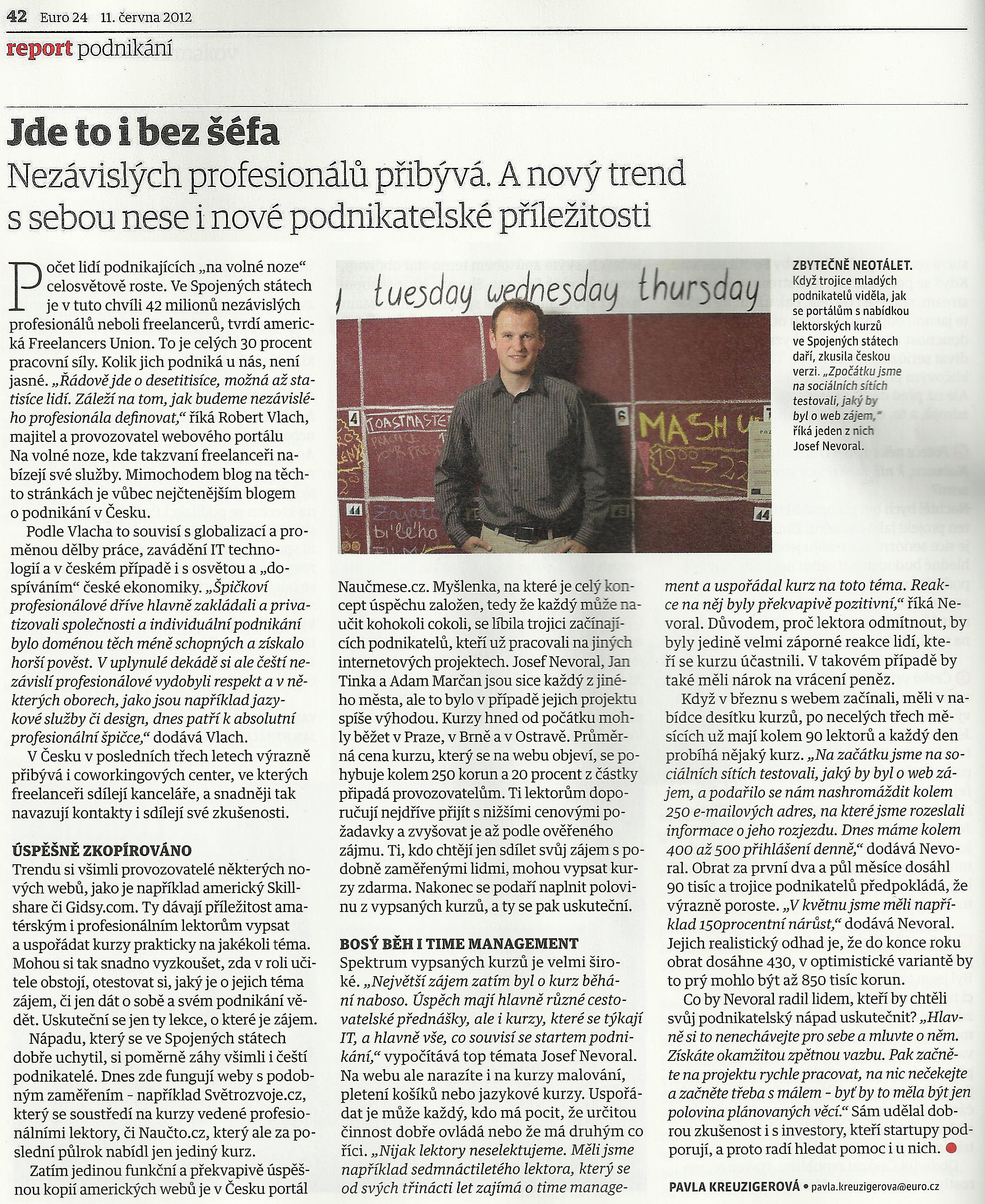 a o digitálním nomádství pro iDNES. V článku nás zmínila také například Margareta Křížová, porotkyně pořadu Den D zaměřeného na podnikatelské nápady.